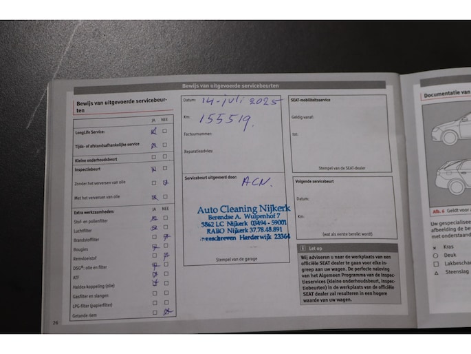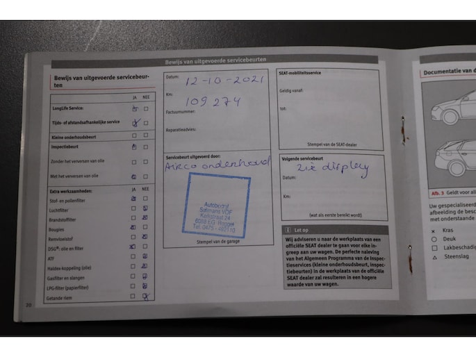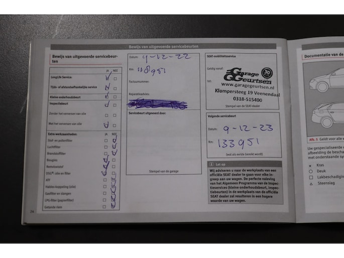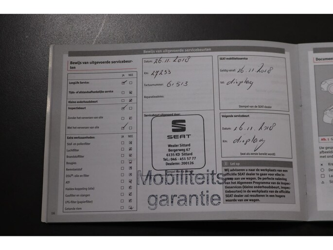 - Onderhoudsboekje (fysiek)