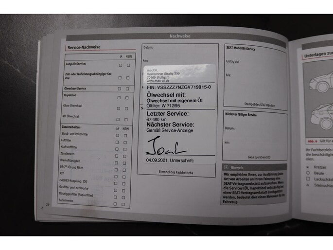 - Onderhoudsboekje (fysiek)