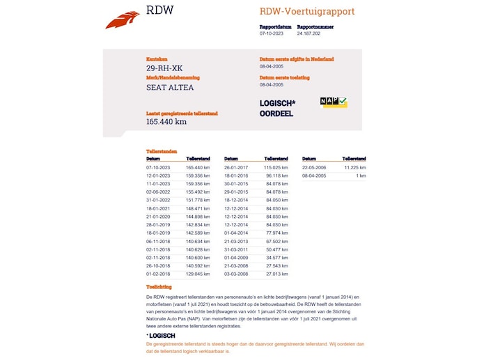 Kilometerstand gecontroleerd
