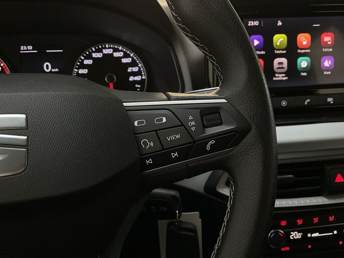 Vergeten af te sluiten? Bandenspanning onvoldoende? De speciale app geeft je direct een seintje met behulp van Connected Services. Het comfort wordt verhoogd door de aanwezige automatische airconditioning. Je hoeft het stuur geen moment los te laten om de audio aan te passen. De audiobediening op het stuur is een veilige en praktische oplossing. De DAB-ontvanger zorgt voor een ruime keuze uit digitale radiozenders en een kristalheldere geluidsweergave. Parkeersensoren zijn een waardevolle toevoeging aan deze auto. De sensoren waarschuwen tijdens het parkeren en voorkomen schade aan de auto. Natuurlijk behoren regensensor, cruise control, automatisch dimmende binnenspiegel, centrale deurvergrendeling met afstandsbediening, boordcomputer en lederen versnellingspook ook tot de uitrusting van deze complete auto.