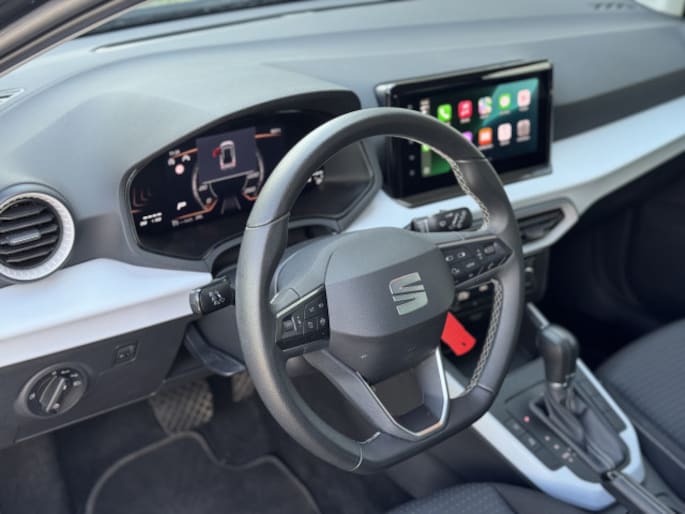 Snelheid, omgevingsinfo, navigatie en communicatie... Het digitale dashboard geeft alles realtime weer. Comfortabel en veilig achteruitrijden gaat gemakkelijker dan ooit met behulp van de achteruitrijcamera. De speciale app verbindt met Connected Services, die de status van vitale functies bijhoudt en waarschuwt als u bijvoorbeeld moet tanken, de bandenspanning moet controleren of olie moet bijvullen. Wat wilt u onderweg horen? Er is volop keus, dankzij bluetooth. Het navigatiesysteem is met het audiosysteem gecombineerd. Met de automatische airconditioning selecteert u de gewenste temperatuur. Het systeem doet de rest. U bent in deze SEAT ook voorzien van DAB ontvangst, regensensor, cruise control, keyless entry, automatisch dimmende binnenspiegel en centrale deurvergrendeling met afstandsbediening.