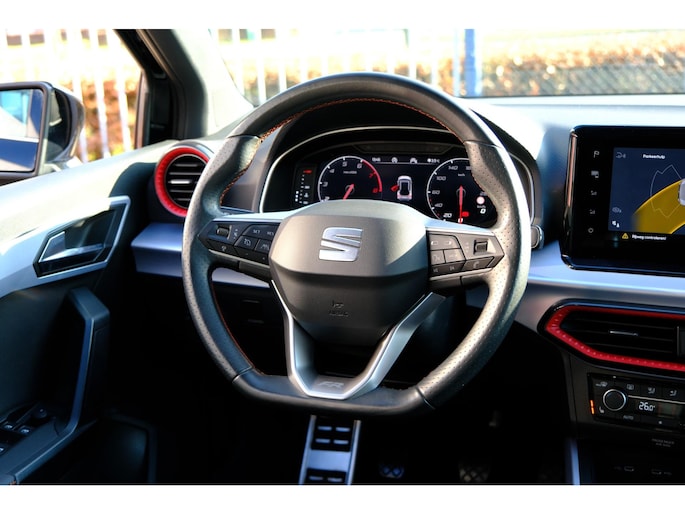 Hoeveel ruimte heeft u nog bij het inparkeren? De achteruitrijcamera brengt helder in beeld wat zich achter de auto bevindt en geeft een geluidssignaal. Met adaptive cruise control houdt deze auto automatisch afstand tot uw voorligger. Zo'n lekkere jonge auto heeft natuurlijk leuke extra's, zoals remote services. Met een speciale app maakt u overal verbinding met de auto. Zo kunt u functies activeren en controleren. De kortste weg, de zuinigste weg, de snelste weg... elke weg is te vinden met het navigatiesysteem. De automatische airconditioning zorgt voor een behaaglijk klimaat in de auto. Met draadloos opladen, multifunctioneel lederen stuur, DAB ontvangst, regensensor, keyless entry en automatisch dimmende binnenspiegel is deze Seat helemaal compleet.