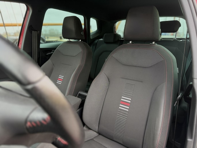 Alles vrij achter? De achteruitrijcamera laat het meteen zien. Adaptive cruise control houdt de ingestelde snelheid vast en houdt automatisch afstand tot uw voorligger. Dankzij de spraaksturing bedient u verschillende functies zonder uw handen van het stuur te halen. In deze auto klinkt uw favoriete muziek nog beter dankzij het high performance audiosysteem. Nooit meer de weg zoeken en ontspannen arriveren bij uw reisdoel. Met het full map navigatiesysteem zit u veilig en ontspannen in de auto. De SEAT is standaard voorzien van: automatische airconditioning, draadloos opladen, DAB ontvangst, regensensor, keyless entry en automatisch dimmende binnenspiegel.