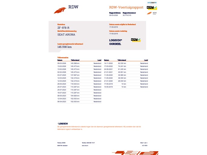 Kilometerstand gecontroleerd