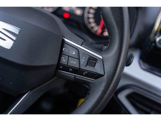 Uw smartphone wordt een dashboard, met alle functies in beeld. Dankzij Connected Services en de speciale app. Een goede veiligheidsvoorziening is de stuurbediening voor belangrijke functies. Het audiosysteem biedt glasheldere geluidskwaliteit dankzij dab-ontvangst. Het comfort wordt verhoogd door de aanwezige automatische airconditioning. Kom-maar-kom-maar...ho! Zo eenvoudig is het voordeel van parkeersensoren. En zo behulpzaam! Achter het stuur van deze SEAT bent u niet alleen. De auto kijkt als het ware met u mee tijdens de rit. De regensensor schakelt de ruitenwissers in als het nodig is en de automatisch inschakelbare verlichting doet de lichten voor u aan. De uitrusting van deze auto is met cruise control, automatisch dimmende binnenspiegel, centrale deurvergrendeling met afstandsbediening en boordcomputer behoorlijk compleet.