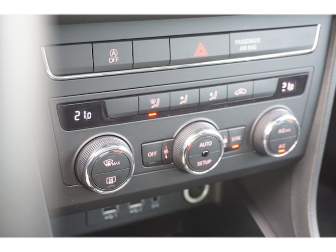 Een handige optie is de achteruitrijcamera. Achteruitrijden, inparkeren en manoeuvreren gaat gemakkelijker dan ooit. Geef uw smartphone weer 100% met de draadloze telefoonlader. Automatische airconditioning verwarmt of koelt het interieur met een druk op de knop. Meer rijcomfort en minder brandstofgebruik? Even de cruise control instellen en dan ontspannen rijden! Een comfortabele optie is keyless entry. U kunt de portieren openen en afsluiten zonder de sleutel vast te houden. U bent in deze Seat ook voorzien van dashboard met spraakbediening, navigatiesysteem, DAB ontvangst, automatisch dimmende spiegels, lederen stuur en bagage afdekhoes.