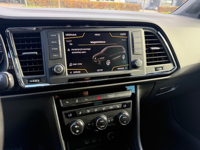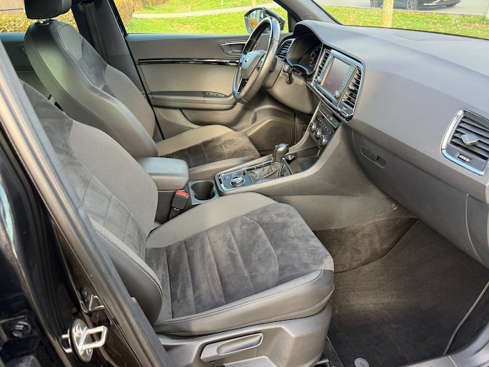 Neem plaats in de cockpit, start de motor en voel het vermogen. Met deze sportieve Seat ATECA hebt u altijd de controle. De aandrijving van deze Seat wordt verzorgd door een viercilinder motor en een handgeschakelde versnellingsbak. De verwarmbare voorstoelen zijn een heerlijke extra optie, waarmee u uzelf en uw bijrijder een groot plezier doet. De sportstoelen zorgen voor een strak uiterlijk én een uitstekende zitsteun. De elektrisch bedienbare achterklep opent met een druk op de knop. Bij de rijke uitrusting horen ook 18 inch lichtmetalen velgen, LED koplampen, extra getint glas, in delen neerklapbare achterbank, LED-achterlichten en verstelbare lendensteunen.