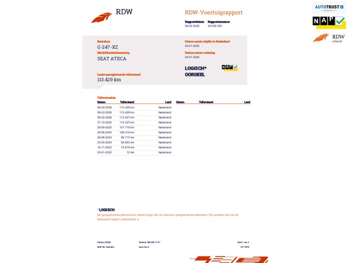 Kilometerstand gecontroleerd