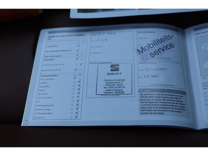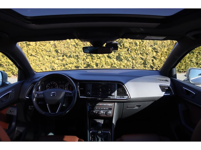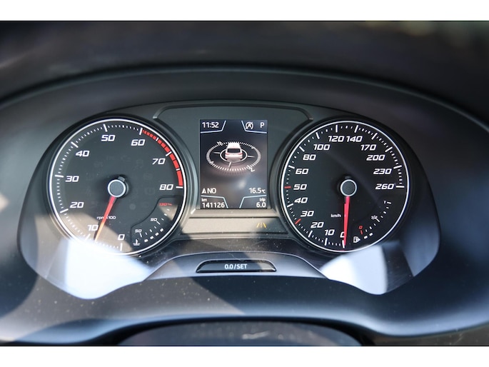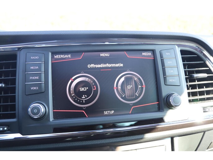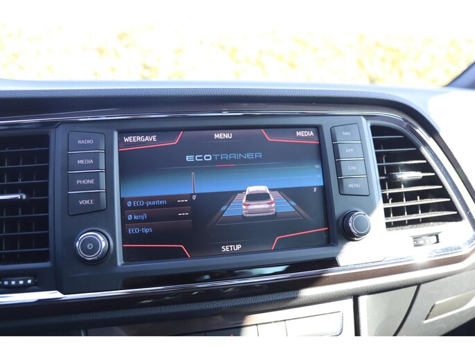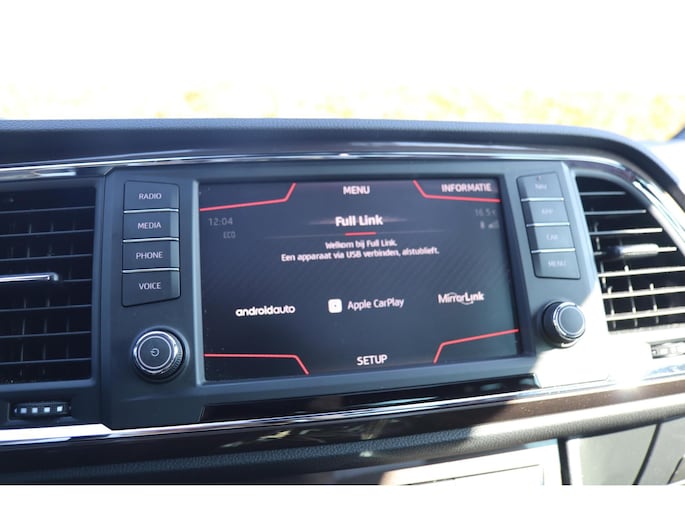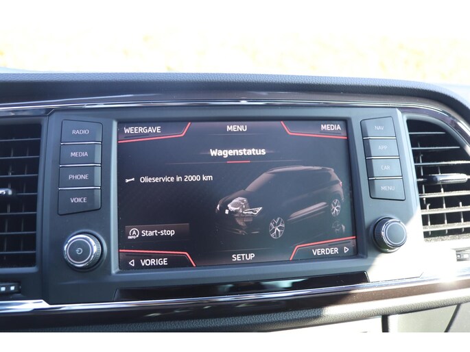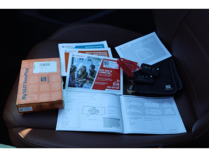 Kinderfietsje niet gezien bij het inparkeren? Dat gebeurt u nooit meer. Daar zorgt de achteruitrijcamera wel voor! Met uw smartphone maakt u overal contact met de auto. Remote services geven direct inzicht in uiteenlopende functies en zijn op afstand te activeren. Het full map navigatiesysteem zorgt ervoor dat u altijd de juiste en snelste route vindt. De automatische airconditioning zorgt voor een prettige binnentemperatuur. Harder, zachter, aan, uit, volgende track, nieuwe zender... alle audiofuncties zijn regelbaar via de audiobediening op het stuur. De uitrusting van deze Seat is met schakelpaddles aan het stuur, regensensor, cruise control, keyless entry, buitentemperatuurmeter en automatisch dimmende binnenspiegel behoorlijk compleet.