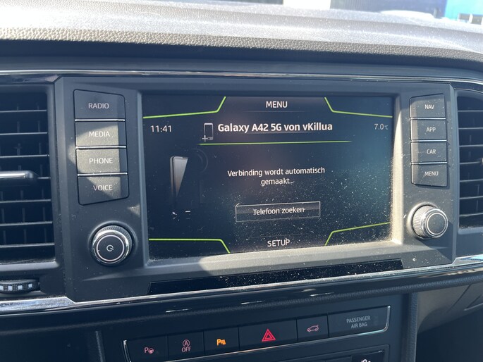 Handig en veilig: Connected Services. Alle vitale functies en data van de auto checkt u via de app op uw smartphone. U kunt het audio-installatiesysteem bedienen vanaf het stuurwiel, dit zorgt ervoor dat u uw aandacht op de weg kunt blijven houden. Tot de standaard uitrusting van deze auto hoort ook automatische airconditioning. De parkeersensoren vertellen precies hoe ver u kunt gaan. Hoe dichter op een obstakel, hoe sneller de piepjes. Zuinig zoeven, dat kan deze auto dankzij de aanwezige cruise control. De uitrusting van deze SEAT is met buitentemperatuurmeter, lederen stuur, centrale deurvergrendeling met afstandsbediening, bagage afdekhoes, boordcomputer en lederen versnellingspook behoorlijk compleet.