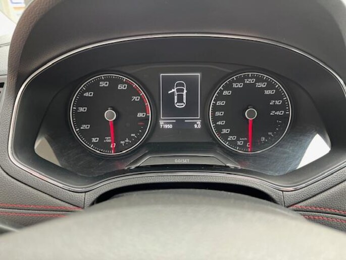 Onderweg kunt u veilig genieten van het audiosysteem en het navigatiesysteem. Want in deze Seat bedient u ze vanaf het stuurwiel of met uw stem. Tot de standaard uitrusting van deze auto hoort ook automatische airconditioning. Liever gepiep dan gekraak? Dan zult u blij zijn met de aanwezige parkeersensoren! De automatisch inschakelbare verlichting en regensensor zorgen dat onderweg automatisch de verlichting en de ruitenwissers worden ingeschakeld. Daarmee nemen ze u veel werk uit handen. Er is ook cruise control aan boord, om met een constant tempo ontspannen en zuinig te rijden. Extra opties op deze auto zijn: automatisch dimmende binnenspiegel, lederen stuur, centrale deurvergrendeling met afstandsbediening, boordcomputer en lederen versnellingspook.