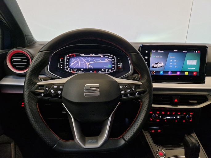 Daarnaast biedt deze Seat Lederen/alcantara sportstoelen, verwarmde voorstoelen en een automatisch geregelde airco, zodat u altijd in comfort rijdt. Met Keyless entry, LED koplampen en lichtmetalen velgen van 18" is dit een auto die gezien mag worden. Het elektrisch glazen panorama-dak zorgt voor een gevoel van vrijheid. De premium telefoonintegratie met het draadloze laadstation zorgt voor ultiem gebruiksgemak