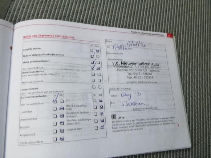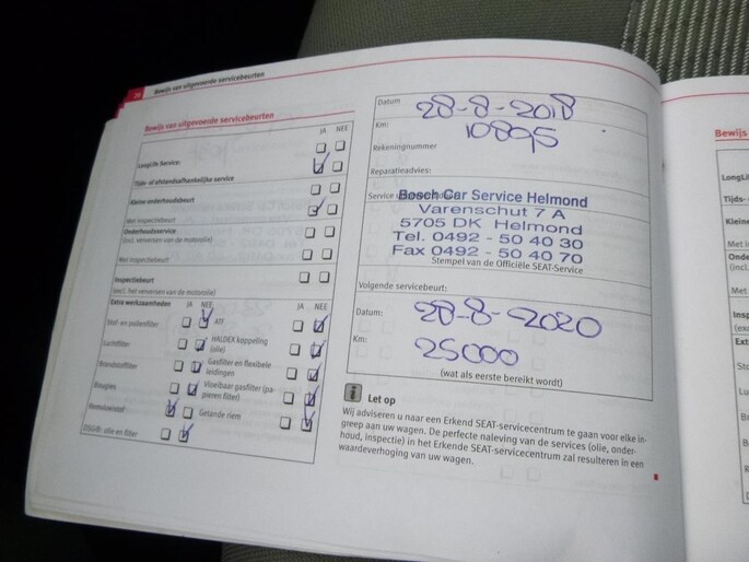 Onderhoudsboekjes: Aanwezig
