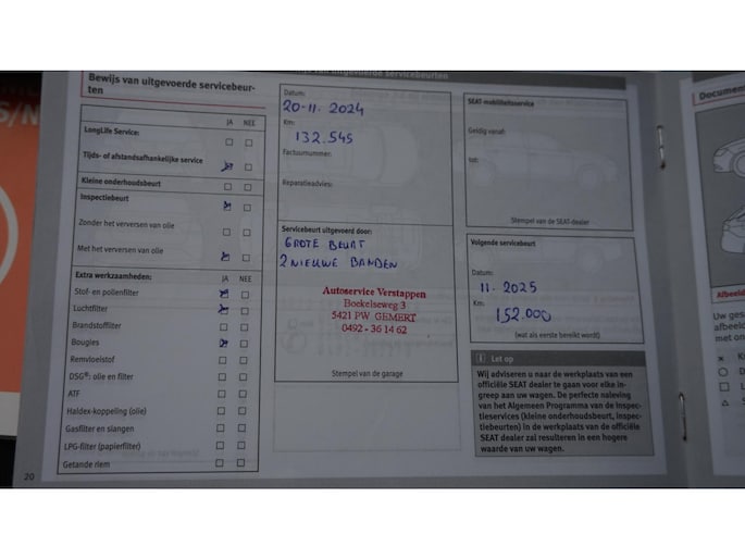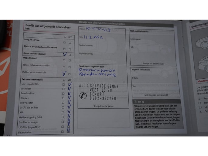 - Onderhoudsboekje (fysiek)