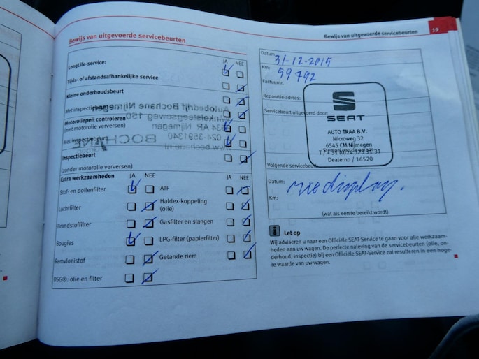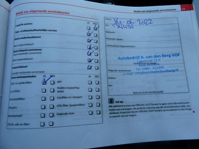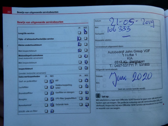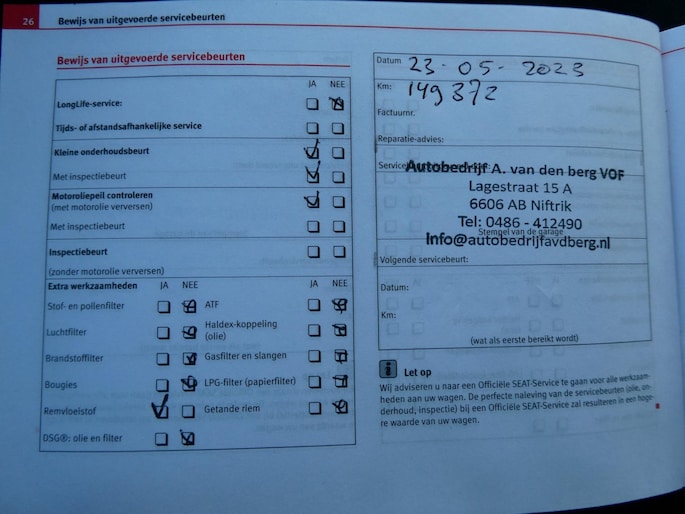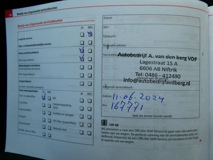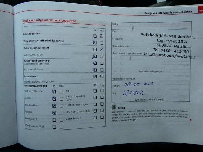 Onderhoudsboekjes: Aanwezig
