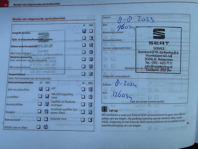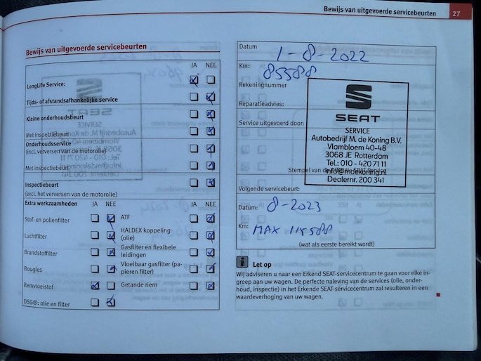 Kilometerstand gecontroleerd
