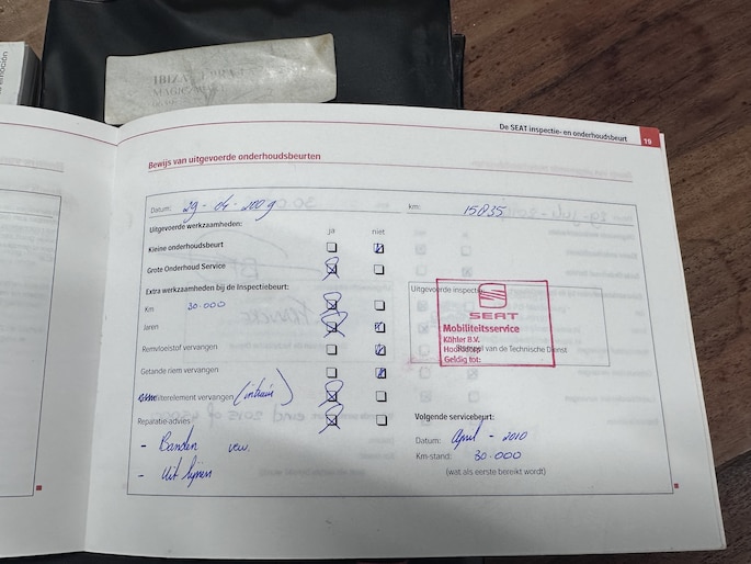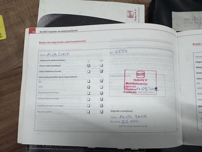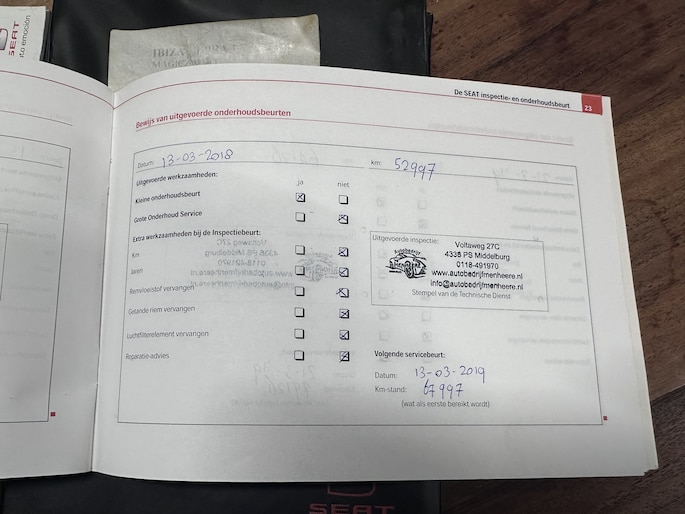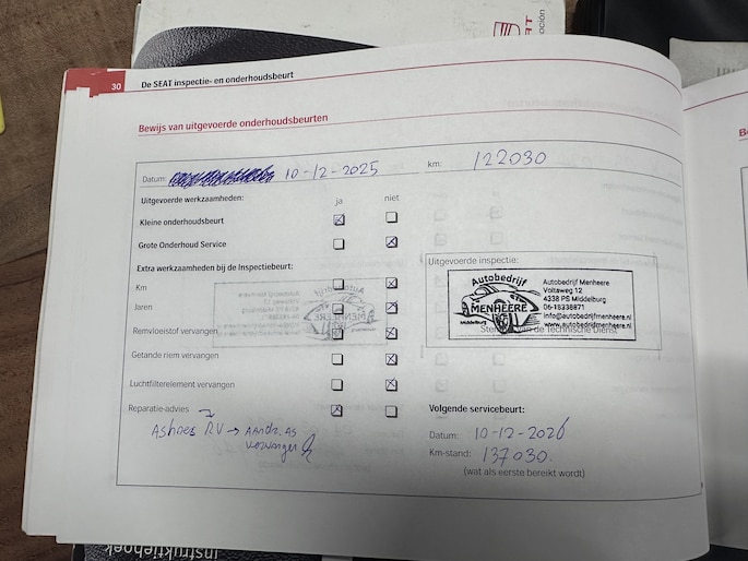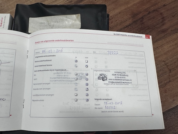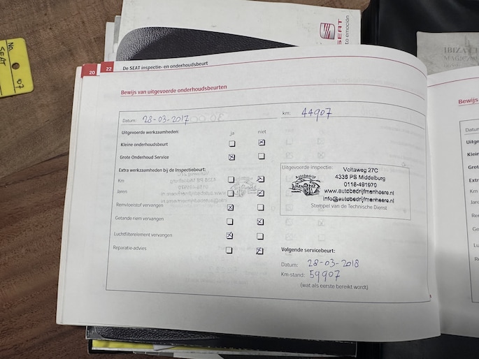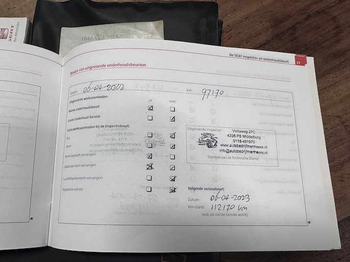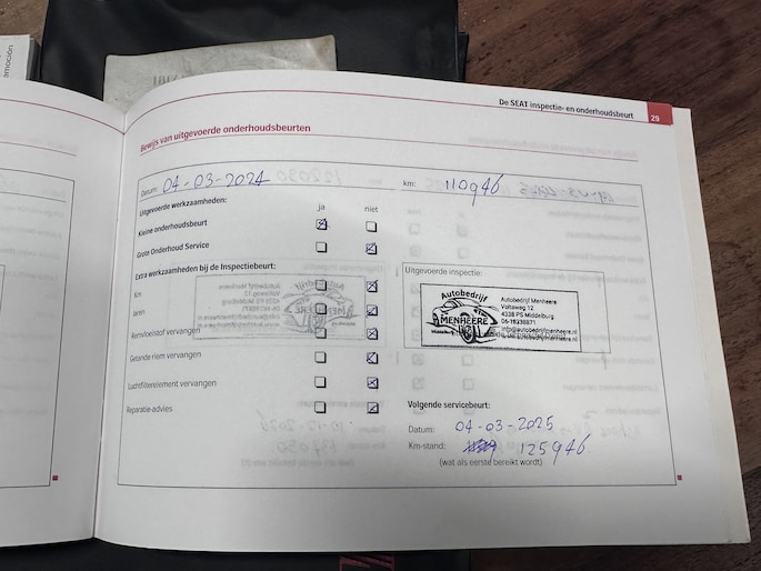 Onderhoudsboekjes: Aanwezig