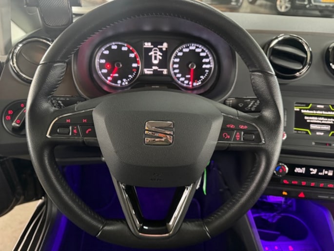 De meest gebruikte voertuigfuncties laten zich met behulp van uw stem bedienen. Nooit meer de weg zoeken en ontspannen arriveren bij uw reisdoel. Met het navigatiesysteem zit u veilig en ontspannen in de auto. Met de automatische airconditioning selecteert u de gewenste temperatuur. Het systeem doet de rest. De meeste schade bij inparkeren komt van een randje of paaltje dat u even niet zag. Maar de parkeersensoren zien alles en waarschuwen op tijd. Om de veiligheid onderweg te verhogen, heeft deze SEAT zowel een automatisch inschakelbare verlichting als een regen- en lichtsensor aan boord, zodat hij zelf de verlichting en de ruitenwissers kan inschakelen. Extra opties op deze auto zijn: multifunctioneel lederen stuur, cruise control, buitentemperatuurmeter, automatisch dimmende binnenspiegel, isofix-aansluiting en usb-aansluiting.