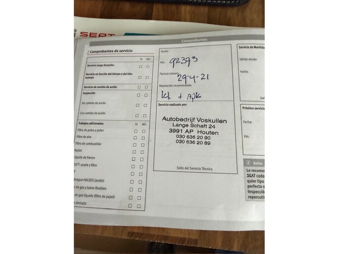 Onderhoudsboekjes: Aanwezig