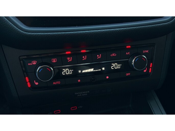 Rijfuncties worden glashelder en overzichtelijk weergegeven via het digitale dashboard. Nooit meer parkeerschade dankzij de achteruitrijcamera. Naast handmatige bediening kunt u belangrijke functies met uw stem bedienen dankzij de ingebouwde spraakbediening. Het full map navigatiesysteem brengt u soepel en vlot naar uw bestemming. Met automatische airconditioning hoeft u alleen de gewenste temperatuur in te stellen. Het systeem doet de rest. Ook is de SEAT uitgerust met: regensensor, cruise control, automatisch dimmende binnenspiegel, lederen stuur, centrale deurvergrendeling met afstandsbediening en boordcomputer.