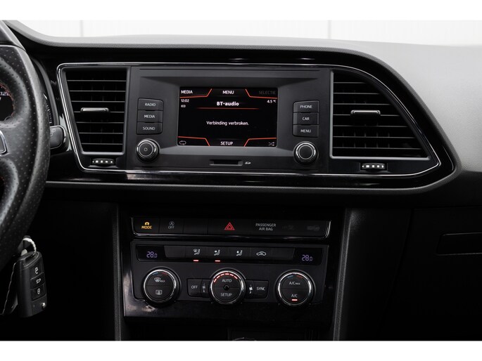 In deze auto beschikt u natuurlijk over een origineel navigatiesysteem. Het Seat sound-system biedt glasheldere geluidskwaliteit, u bedient dit veilig via het stuurwiel. Het spreekt voor zich dat een auto als deze ook van automatische airconditioning is voorzien. Natuurlijk is een complete auto als deze ook voorzien van sensoren die de omgeving in de gaten houden. Deze SEAT heeft niet alleen een automatisch inschakelbare verlichting aan boord, maar ook een regensensor. Met de cruise control komt u bijna nog fitter aan dan u vertrekt. De SEAT is standaard voorzien van: automatisch dimmende binnenspiegel, usb-aansluiting, centrale deurvergrendeling met afstandsbediening, boordcomputer en lederen versnellingspook.