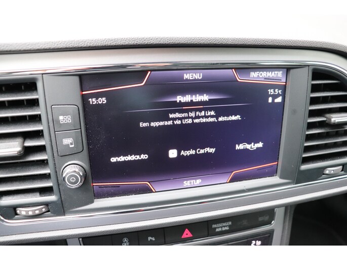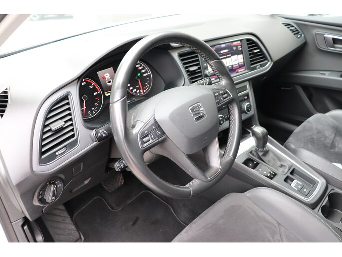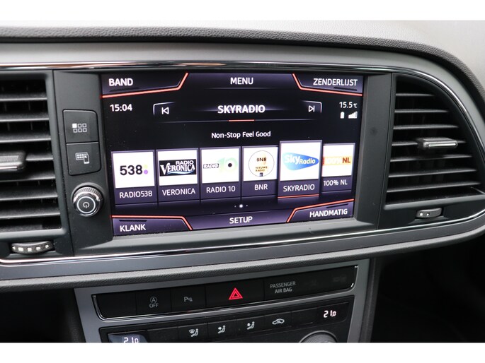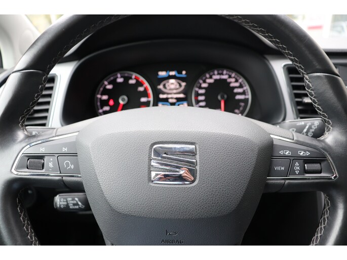 Een belangrijke veiligheidsvoorziening is de bediening van het audio-installatiesysteem en het full map navigatiesysteem, via knoppen op het stuur en middels spraakbediening. DAB-ontvangst geeft daarbij een kraakheldere ontvangst. Is uw smartphone geschikt voor snoerloos opladen? Dan zorgt de draadloze oplaadmogelijkheid voor telefoons weer voor een volle accu zonder snoeren en stekkers. Met automatische airconditioning hoeft u alleen de gewenste temperatuur in te stellen. Het systeem doet de rest. De meeste schade bij inparkeren komt van een randje of paaltje dat u even niet zag. Maar de parkeersensoren zien alles en waarschuwen op tijd. Het luxeniveau in deze SEAT is niet alleen gericht op comfort, maar ook op uw veiligheid. Tal van sensoren helpen u om de omgeving in de gaten te houden. De automatisch inschakelbare verlichting zorgt dat automatisch de verlichting wordt ingeschakeld als het donker wordt, wat bijvoorbeeld in tunnels erg handig is. En de regensensor zet de ruitenwissers aan zonder dat u eraan hoeft te denken. Deze SEAT is voorzien van cruise control, keyless entry, automatisch dimmende binnenspiegel, lederen stuur, boordcomputer en lederen versnellingspook.