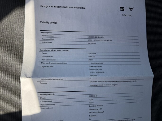 Kilometerstand gecontroleerd