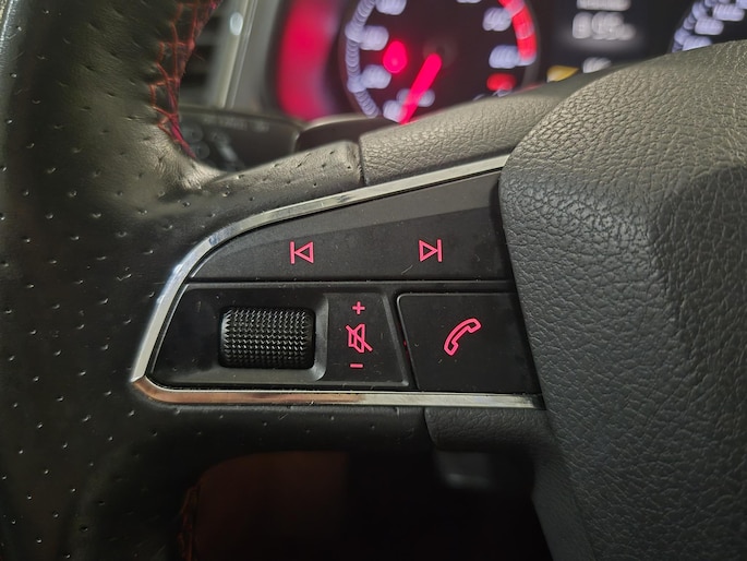 Wat een gemak, die achteruitrijcamera. Alles in beeld zonder capriolen. Muziek luisteren wordt genieten met het high performance audiosysteem. Deze auto kent elke bestemming als z'n broekzak, dankzij het navigatiesysteem met harde schijf. Het comfort wordt verhoogd door de aanwezige automatische airconditioning. Uw ogen horen op de weg, toch? Daarom is deze auto voorzien van audiobediening op het stuur. Gemakkelijk én veilig! Met DAB ontvangst, regensensor, cruise control, automatisch dimmende binnenspiegel, lederen stuur en centrale deurvergrendeling met afstandsbediening is deze SEAT helemaal compleet.