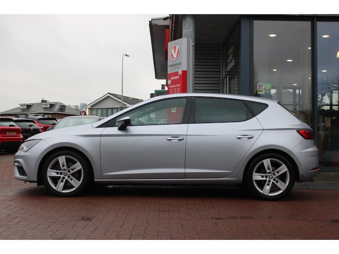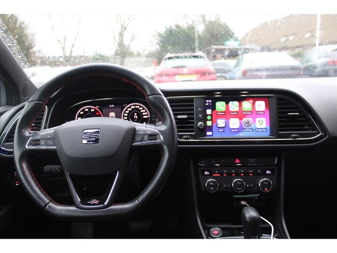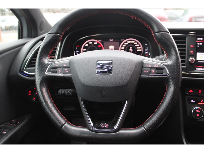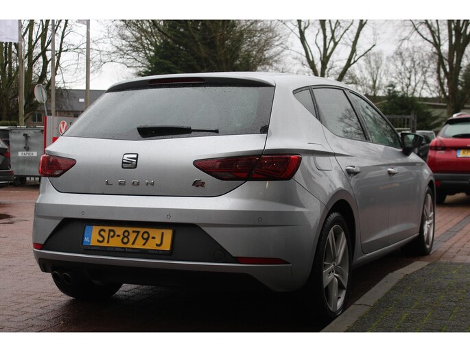 Deze SEAT Leon staat voor u klaar. Een geweldige, nog jonge occasion die goed is voor gemakkelijk nog een tonnetje of twee op de teller. In deze auto vindt u een benzinemotor en een automatische transmissie. U blijft ook in de scherpe bochten goed ondersteund door de fraaie sportstoelen. Tot de voorzieningen van deze auto behoren 17 inch lichtmetalen velgen, sportonderstel, halogeen koplampen met LED-dagrijverlichting, elektrische handrem, zwarte hemelbekleding en elektrisch inklapbare buitenspiegels.