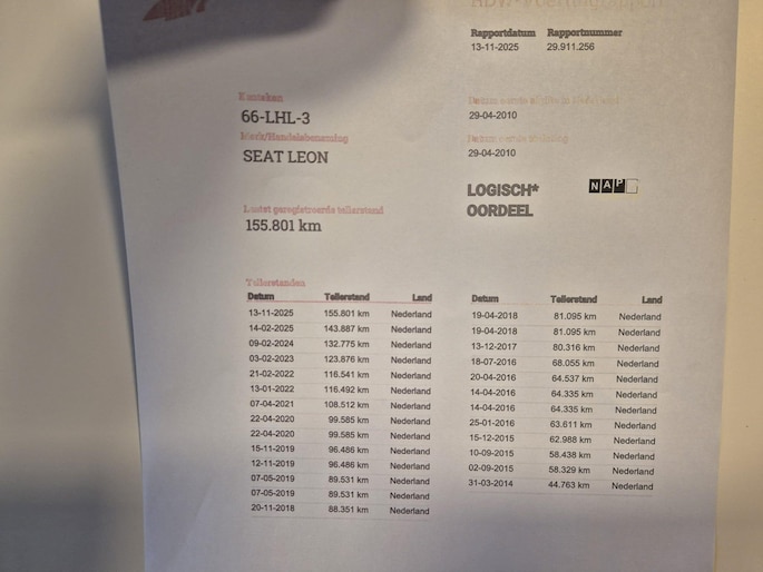 Kilometerstand gecontroleerd