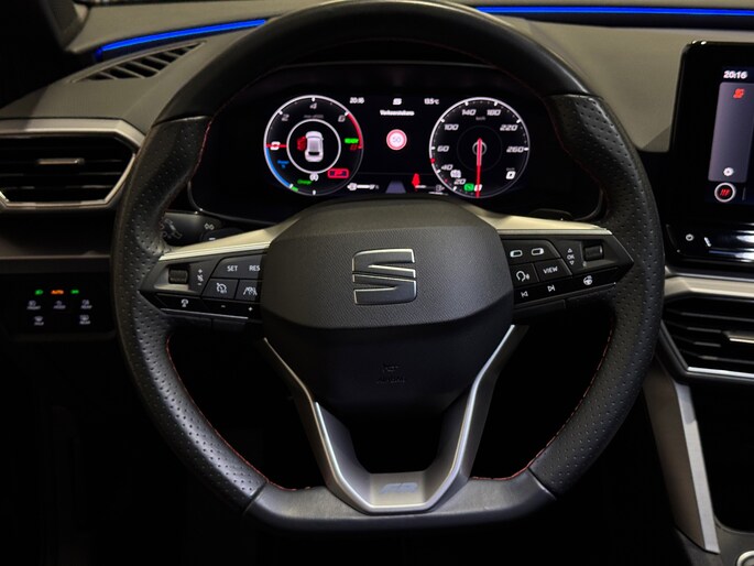 Uitgevoerd in stijlvol lichtmetalen velgen van 18 inch en een elektrisch glazen schuif-/kanteldak, straalt deze Leon luxe en sportiviteit uit. Het interieur biedt comfort en technologie met sportstoelen, een volledig digitaal instrumentenpaneel, multifunctioneel sportstuur, automatische airconditioning en moderne functies zoals spraakbediening en Apple Carplay/Android Auto.