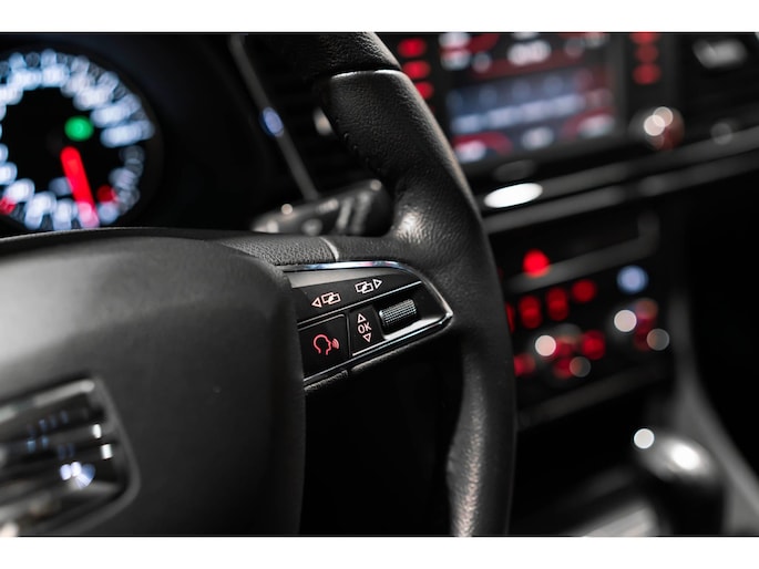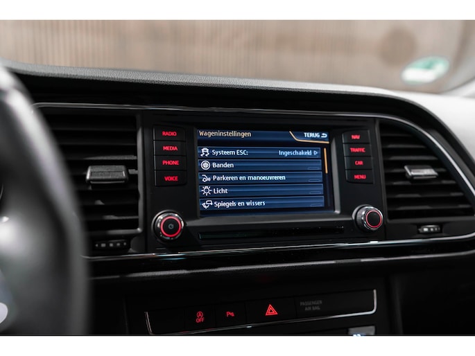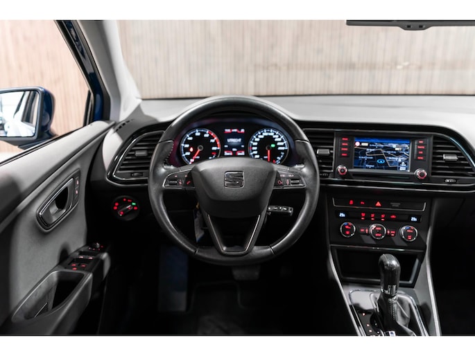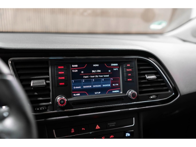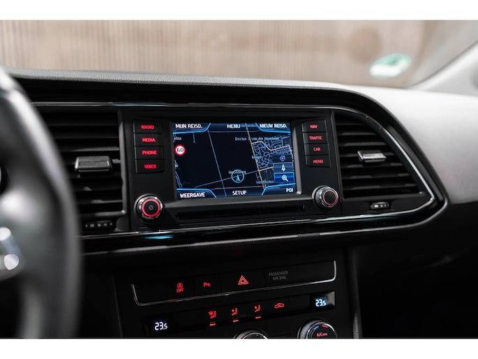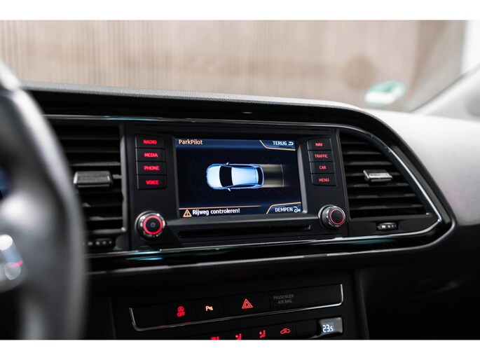 Adaptive cruise control is een comfortabele en veilige optie. Het systeem reguleert de snelheid en houdt automatisch afstand tot uw voorligger. Het complete geluidsspectrum van de hi-fi krijgt een extra boost door het high performance audiosysteem. Automatische airconditioning regelt volautomatisch de temperatuur. U kiest de gewenste temperatuur en het systeem doet de rest. Parkeerplekken worden er niet ruimer op. Maar met de aanwezige parkeersensoren krijgt u deze Seat Leon zonder problemen op z'n plaats. De auto neemt u werk uit handen doordat hij zelf veel in de gaten houdt. Een regensensor en een automatisch inschakelbare verlichting nemen waar wanneer de ruitenwissers en het licht aan moeten. Ook is de Seat uitgerust met: dashboard met spraakbediening, navigatiesysteem, automatisch dimmende binnenspiegel, lederen stuur, centrale deurvergrendeling met afstandsbediening en boordcomputer.
