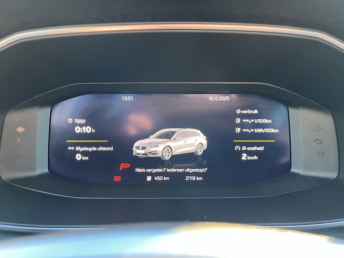 Het digitale dashboard ondersteunt je voortdurend met actuele, bruikbare informatie. Niets achter deze auto blijft verborgen door de achteruitrijcamera. Een veilig gevoel! Als je de adaptive cruise control inschakelt, regelt de auto zelf de snelheid en de afstand tot de auto voor je. De ingebouwde file assistent is een echte helper als het vaststaat onderweg. Het systeem meet ruimte tot de auto vóór u permanent en activeert zelfs de remmen als je voorligger stopt. Spraaksturing luistert naar jouw stem en bedient de belangrijkste voertuigfuncties. De SEAT is standaard voorzien van: connected drive services, full map navigatiesysteem, automatische airconditioning, schakelpaddles aan het stuur, DAB ontvangst en regensensor.