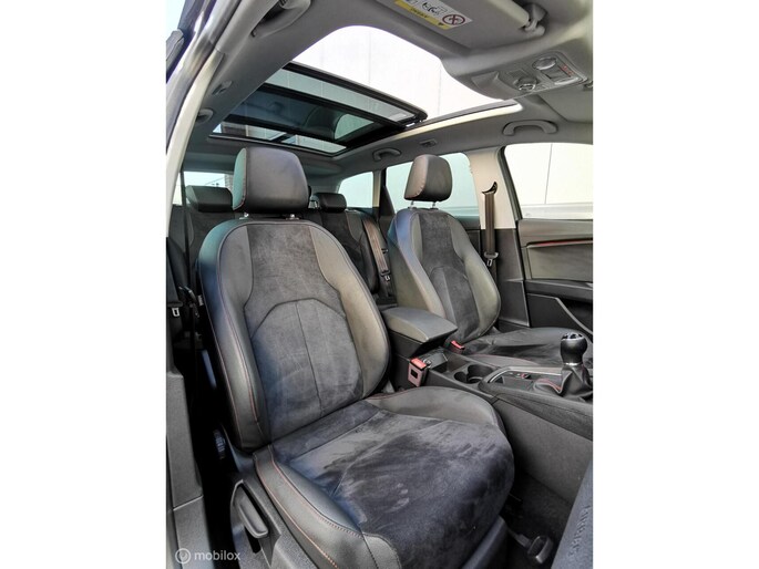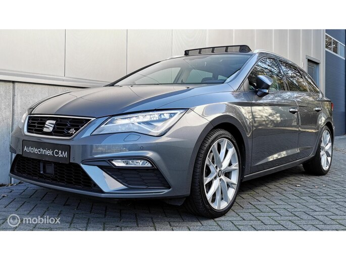 Deze in nieuwstaat verkerende Seat leon station van bouwjaar 2017 beschikt over de meest luxe opties. De Seat is afkomstig van de 1e eigenaar, en bezit over 2 dikke kap sleutels, Zowel van binnen en buiten in nieuwstaat! Complete documentatie aanwezig (servicehistorie). De seat leon beschikt over een benzine motor met 150pk, deze is zeer zuinig in verbruik met de handgeschakelde 6 versnellingsbak. Zeer rijk uitgerust met onder andere, FR pakket interieur en exterieur, half lederen bekleding met alcantara, cruise control, DCC, PANORAMADAK, multimedia systeem met bt media met navigatie en APPLE ANDROID CARPLAY, DAB RADIO, airco, Xenon led verlichting Matrix koplampen full led, lm velgen 18 inch, DAB RADIO, Sfeerverlichting, seat sound systeem etc........ (zie optielijst)
