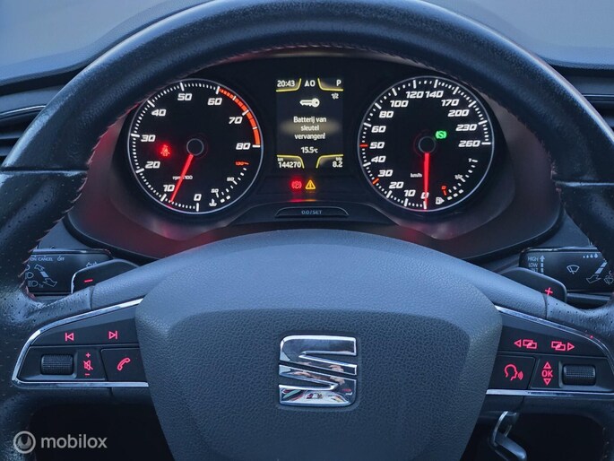 Het high performance audiosysteem staat garant voor een levendige en krachtige muziekweergave. Natuurlijk is er ook automatische airconditioning aanwezig. Soms heeft u meer parkeerruimte dan u denkt. Maar soms ook niet. De parkeersensoren vertellen precies hoeveel. Het luxeniveau in deze Seat is niet alleen gericht op comfort, maar ook op uw veiligheid. Tal van sensoren helpen u om de omgeving in de gaten te houden. De automatisch inschakelbare verlichting zorgt dat automatisch de verlichting wordt ingeschakeld als het donker wordt, wat bijvoorbeeld in tunnels erg handig is. En de regensensor zet de ruitenwissers aan zonder dat u eraan hoeft te denken. De cruise control geeft elke flitser het nakijken. De Seat is standaard voorzien van: dashboard met spraakbediening, full map navigatiesysteem, schakelpaddles aan het stuur, DAB ontvangst, automatisch dimmende binnenspiegel en isofix-aansluiting.