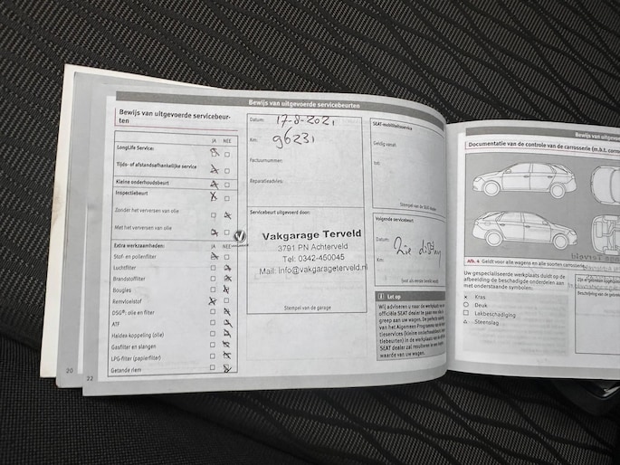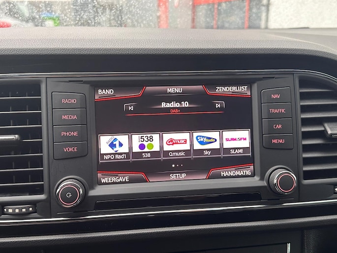 Een vergeten muurtje, een verborgen paaltje? Dat gebeurt niet meer, dankzij de achteruitrijcamera. De speciale app verbindt met Connected Services, die de status van vitale functies bijhoudt en waarschuwt als u bijvoorbeeld moet tanken, de bandenspanning moet controleren of olie moet bijvullen. De auto is ook uitgevoerd met automatische airconditioning. De elektronische systemen in deze SEAT helpen u actief om comfortabeler te rijden. Een automatisch inschakelbare verlichting en een regensensor houden de omstandigheden onderweg in de gaten. Maximumsnelheid? Even de cruise control instellen en u blijft perfect binnen de marges. Met navigatiesysteem, automatisch dimmende binnenspiegel, lederen stuur, centrale deurvergrendeling met afstandsbediening, boordcomputer en lederen versnellingspook is deze SEAT helemaal compleet.