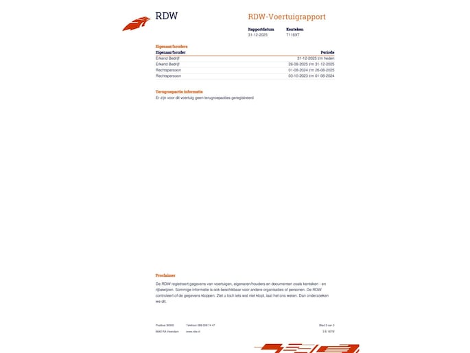 Kilometerstand gecontroleerd
