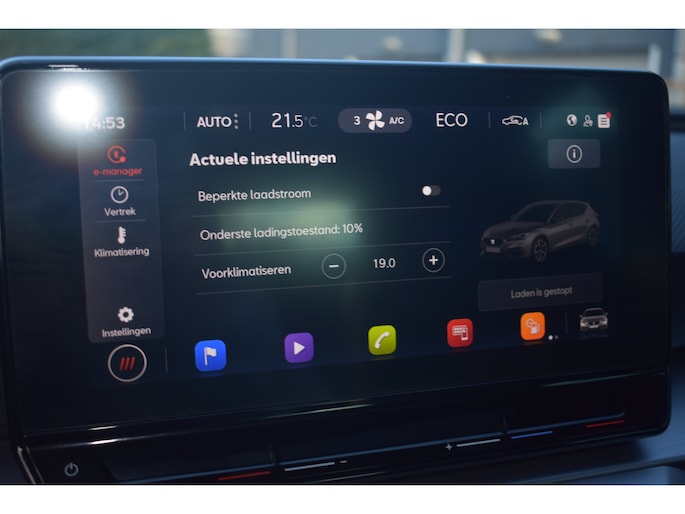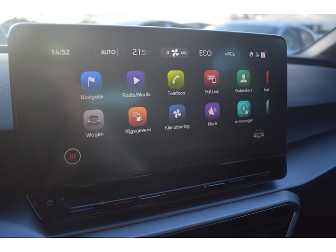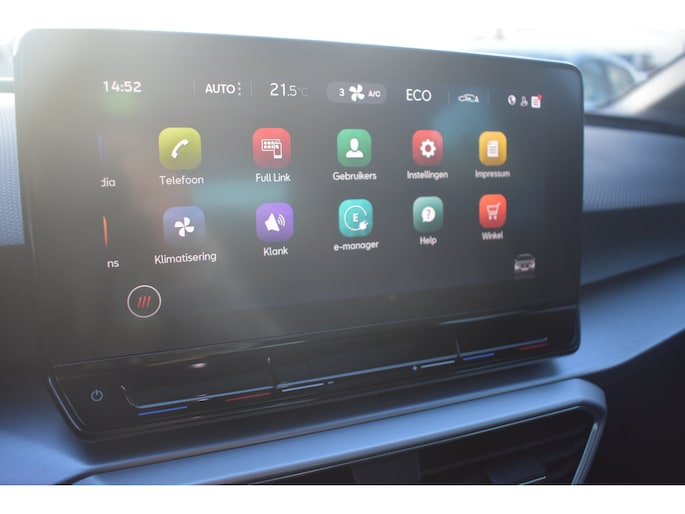 Dat u het milieu wilt sparen, wil nog niet zeggen dat u aan rijcomfort moet inleveren. De SEAT Leon is een comfortabele en ruime hybride auto. Deze hybride auto heeft een sterke, zuinige elektromotor én een verbrandingsmotor. Kortom: uitstekende rijprestaties en een veel lager brandstofgebruik. Geniet van de lichtinval en het uitzicht van het grote glazen panoramadak. Tot de voorzieningen van deze auto behoren warmtewerend glas, LED-dagrijverlichting, zwarte hemelbekleding, in hoogte verstelbare voorstoelen, verstelbare lendensteunen en stoffen bekleding. Wat een gemak, die achteruitrijcamera. Alles in beeld zonder capriolen. Er is geen bestemming die het aanwezige navigatiesysteem niet kent. Dat rijdt lekker! Het spreekt voor zich dat een auto als deze ook van climatronic 3 zones airconditioning is voorzien. De DAB-ontvanger zorgt voor een ruime keuze uit digitale radiozenders en een kristalheldere geluidsweergave. Met keyless entry kunt u portieren ontgrendelen zonder dat u de sleutel in uw hand houdt. Wat u ook in deze auto kunt vinden zijn lederen sportstuur, isofix-aansluiting en boordcomputer. De geavanceerde technologie in deze SEAT is in staat om onderweg het verkeer om u heen te monitoren en er op te reageren. Zo hebt u als het ware een automatische co-piloot aan boord. In het instrumentarium laat de verkeersborddetectie de actuele verkeersborden zien. Hebben we u nieuwsgierig gemaakt? Bel of mail ons nu voor een proefrit.