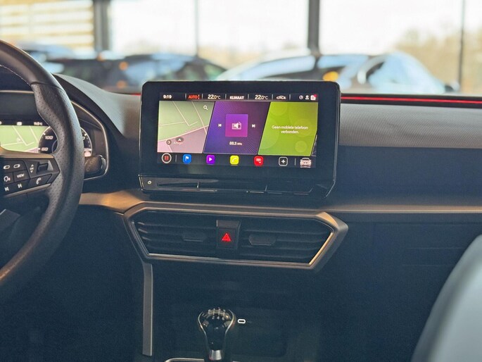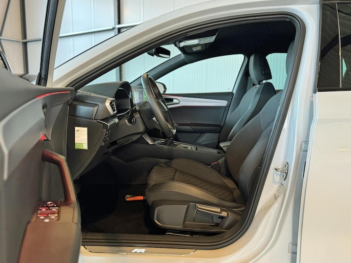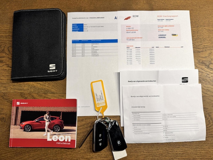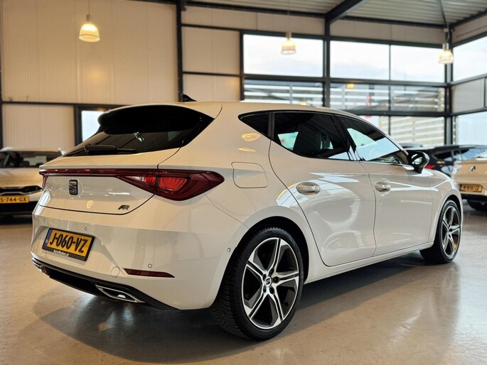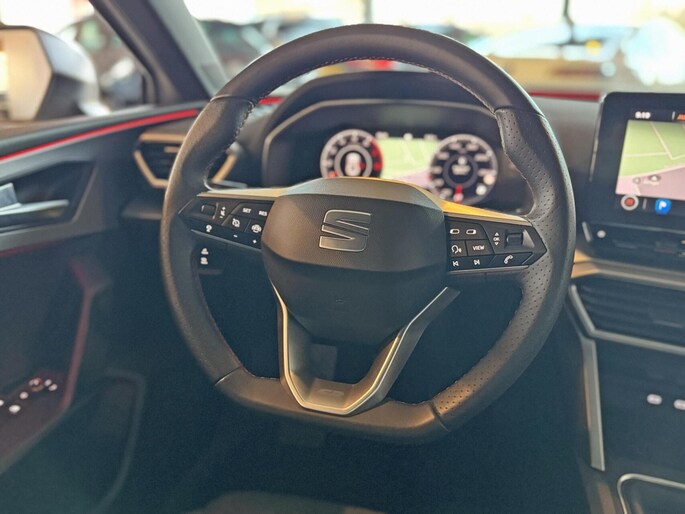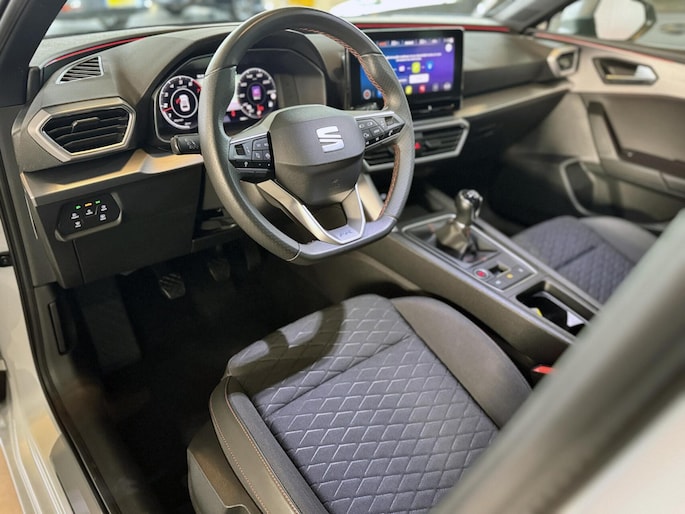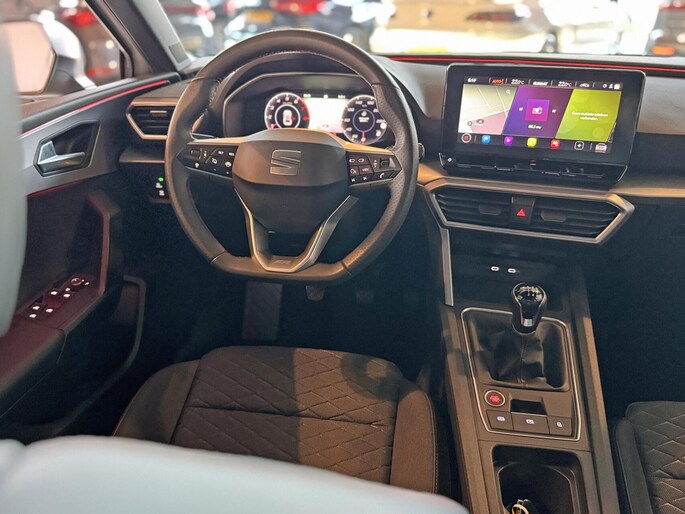 Deze auto is voorzien van een digitaal dashboard waarmee u de cockpit-interface kunt personaliseren. Adaptive cruise control houdt de ingestelde snelheid vast en houdt automatisch afstand tot uw voorligger. Deze Seat Leon is voorzien van remote services. Via uw smartphone bedient u diverse functies ook op afstand en krijgt u informatie over de status van uw auto. Terwijl het full map navigatiesysteem de ideale route voor u uitstippelt, geniet u van de kwaliteit van het audiosysteem met DAB-ontvangst. De bediening is bovendien gemakkelijk via knoppen op het stuur of via spraak. Dankzij automatische airconditioning is het interieur behaaglijk warm of verfrissend koel. Wat u ook in deze auto kunt vinden zijn parkeersensoren achter, regensensor, sportstuurwiel, automatisch dimmende binnenspiegel, isofix-aansluiting en centrale deurvergrendeling met afstandsbediening.