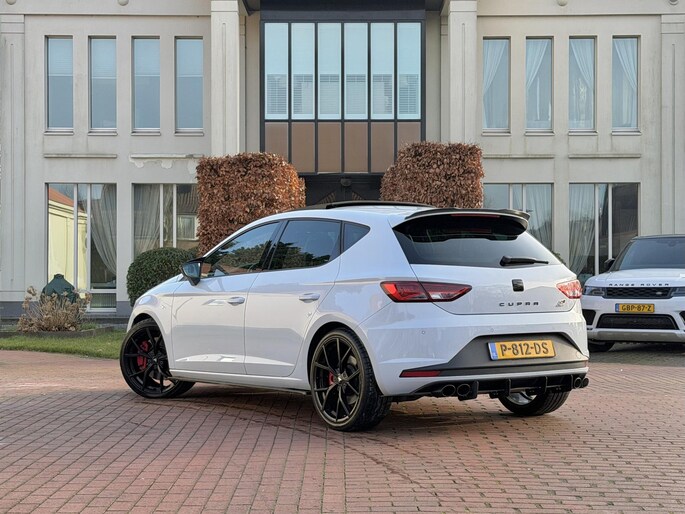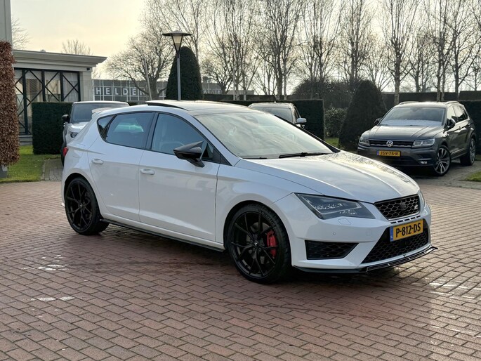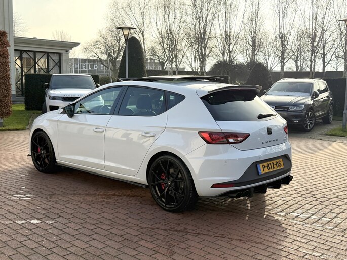 Deze SEAT Leon staat voor u klaar. Een geweldige, nog jonge occasion die goed is voor gemakkelijk nog een tonnetje of twee op de teller. Trap het gaspedaal in en voel de geweldige acceleratie van de viercilinder benzinemotor van deze sportwagen. Op koude en donkere dagen zijn de verwarmbare voorstoelen een uitkomst. Pittig rijden wordt nog comfortabeler dankzij de fraaie sportstoelen. Voel die ruimte eens! Lekker veel licht door het elektrisch bediende glazen panoramadak. Tot de voorzieningen van deze auto behoren 19 inch lichtmetalen velgen, LED koplampen, sportonderstel, adaptief dempingsysteem, dakspoiler en extra getint glas.