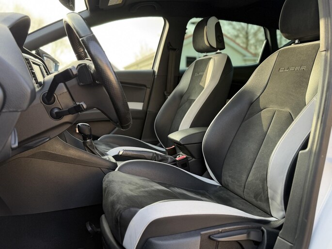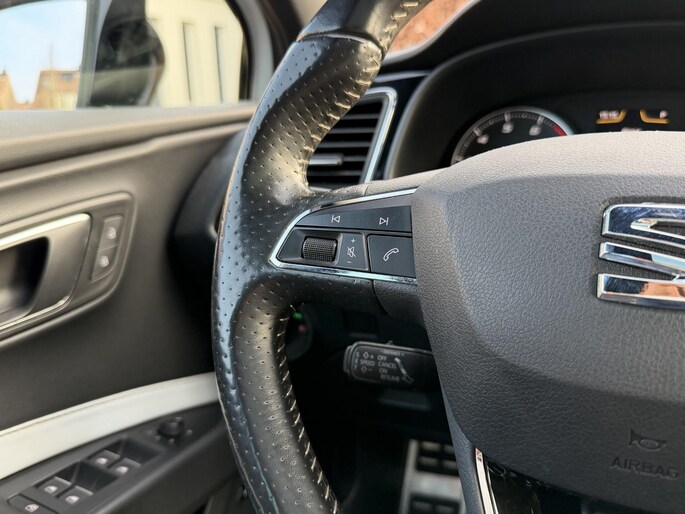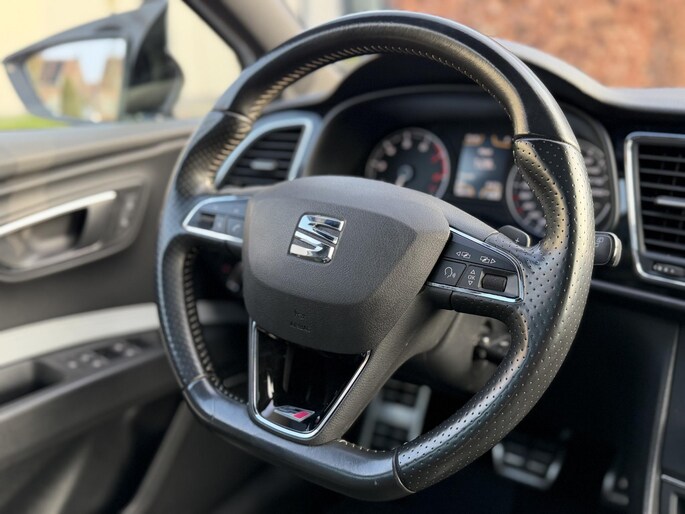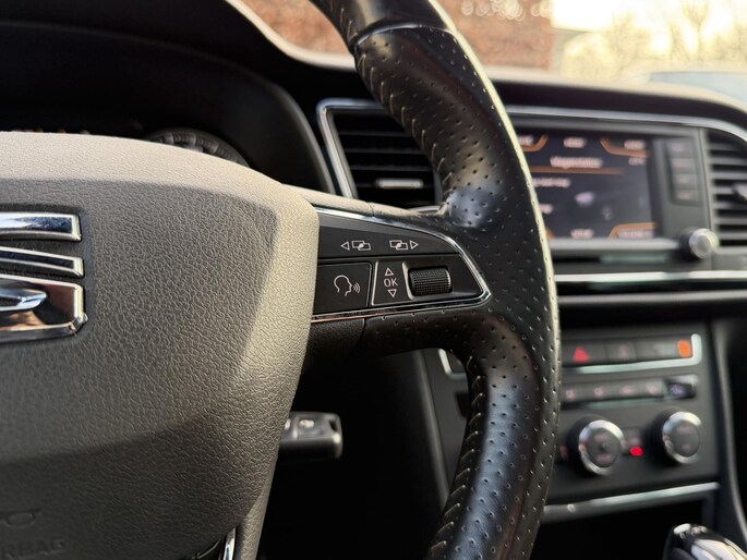 Adaptive cruise control houdt de ingestelde snelheid vast en houdt afstand tot het voertuig voor u. Rijplezier en luisterplezier gaan hand in hand dankzij het high performance audiosysteem. Deze auto kent elke bestemming als z'n broekzak, dankzij het navigatiesysteem. Automatische airconditioning verwarmt of koelt het interieur met een druk op de knop. Volume aanpassen, andere radiozender? U bedient het audiosysteem veilig en handig met de functies op het stuur. U bent in deze SEAT ook voorzien van sportstuur met schakelpaddels, DAB ontvangst, parkeersensoren voor en achter, regensensor, automatisch dimmende binnenspiegel en centrale deurvergrendeling met afstandsbediening.