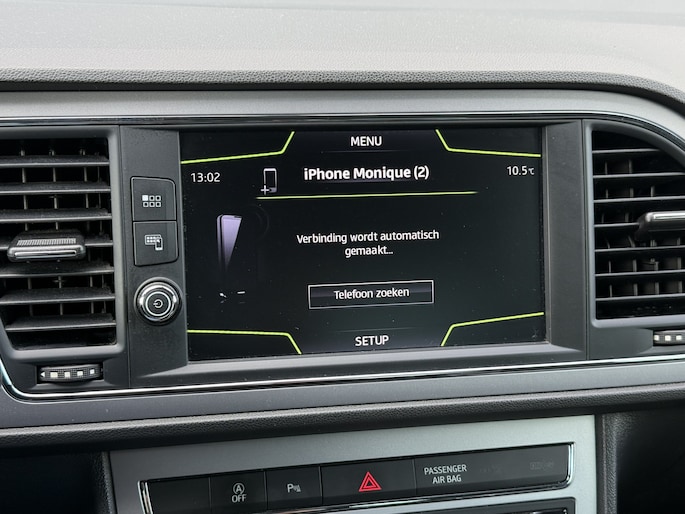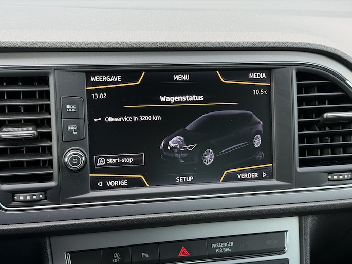 Terwijl u uw ogen op de weg houdt, kunnen de functies van het audiosysteem bediend worden via het stuurwiel. Of het buiten nu warm is of koud, dankzij automatische airconditioning is het binnen altijd behaaglijk. Parkeersensoren helpen u tijdens het in- en uitparkeren. De cruise control levert een mooie, gelijkmatige koers. Dat rijdt prettig. Met de elektronische sleutel in uw zak en met één druk op de knop start u de auto. Dat is keyless start! Met lederen stuur, isofix-aansluiting, centrale deurvergrendeling met afstandsbediening, boordcomputer en lederen versnellingspook is deze SEAT helemaal compleet.