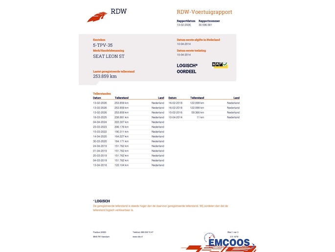 Kilometerstand gecontroleerd