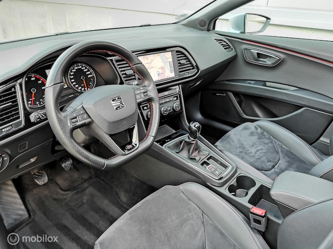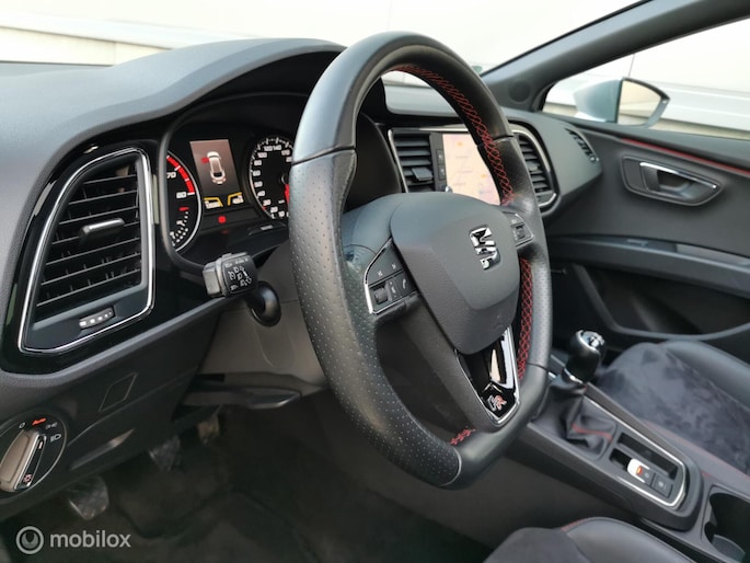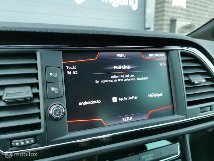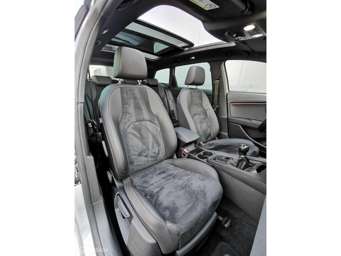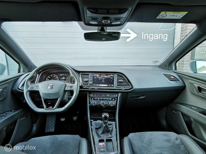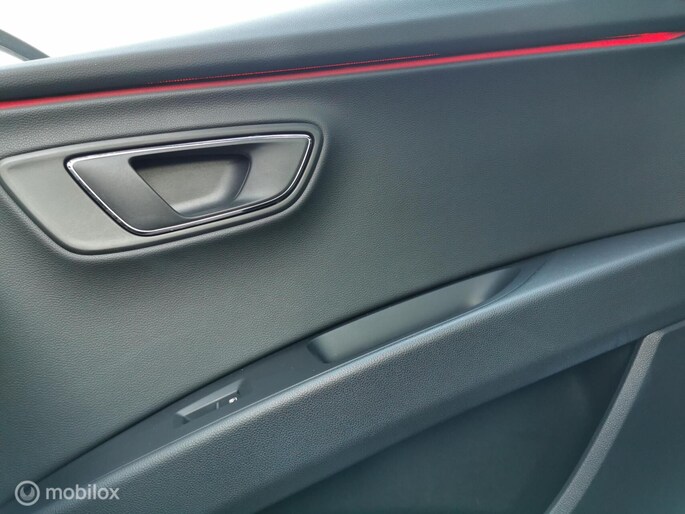 Deze in nieuwstaat verkerende Seat leon station van bouwjaar 2017 beschikt over de meest luxe opties. De Seat is afkomstig van de 1e eigenaar, en bezit over 2 dikke kap sleutels, Zowel van binnen en buiten in nieuwstaat! Complete documentatie aanwezig (servicehistorie). De seat leon beschikt over een benzine motor met 150pk, deze is zeer zuinig in verbruik met de handgeschakelde 6 versnellingsbak. Zeer rijk uitgerust met onder andere, FR pakket interieur en exterieur, half lederen bekleding met alcantara, cruise control, DCC, PANORAMADAK, multimedia systeem met bt media met navigatie en APPLE ANDROID CARPLAY, DAB RADIO, airco, Xenon led verlichting Matrix koplampen full led, lm velgen 18 inch, DAB RADIO, Sfeerverlichting, seat sound systeem, Afneembaar trekhaak etc........ (zie optielijst)
