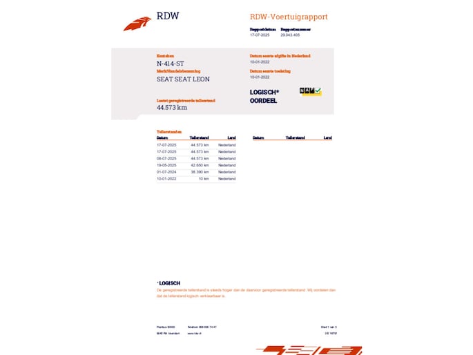Kilometerstand gecontroleerd