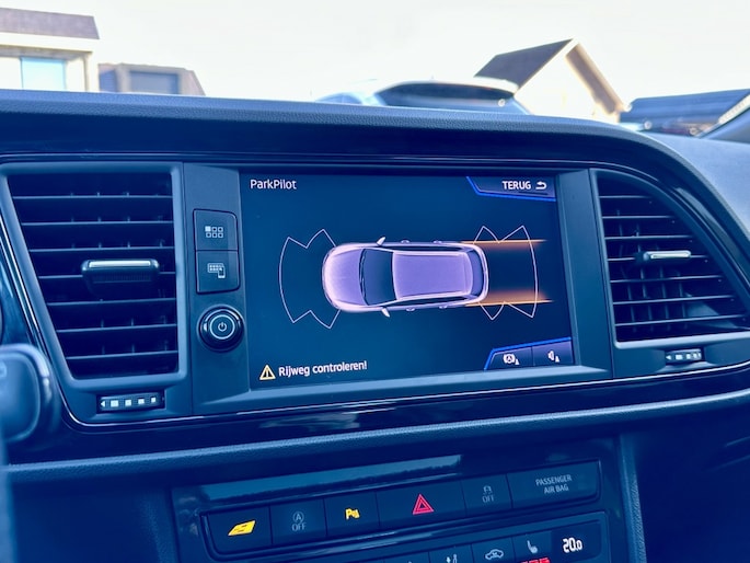 De nieuwste veiligheidssystemen komen in deze Seat Leon ST samen. Verkeersborddetectie herkent tijdelijke en permanente verkeersborden langs en boven de weg. Brake assist verhoogt de remdruk in een noodsituatie zodat je sneller stil staat.