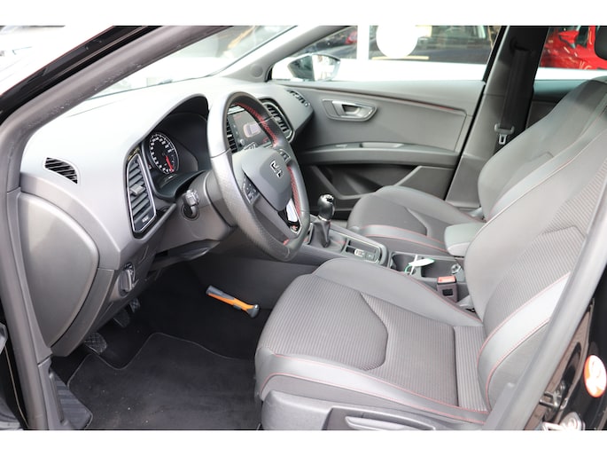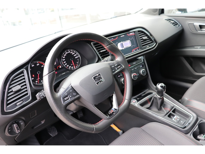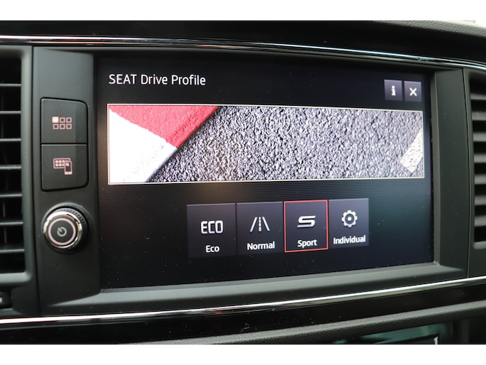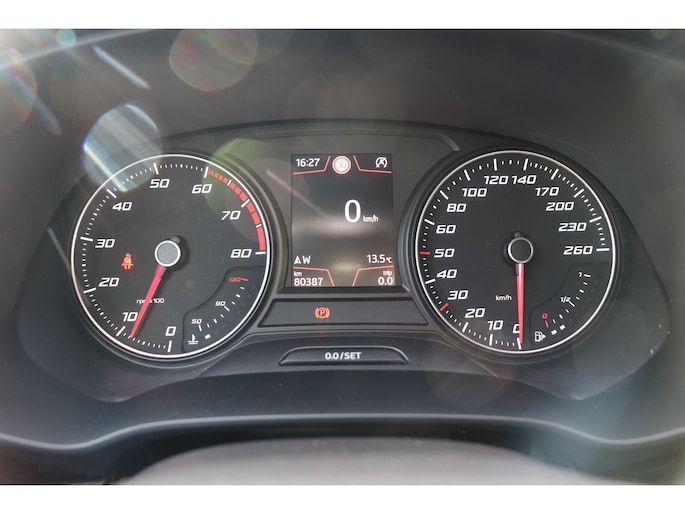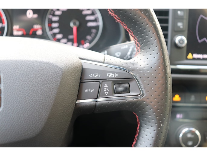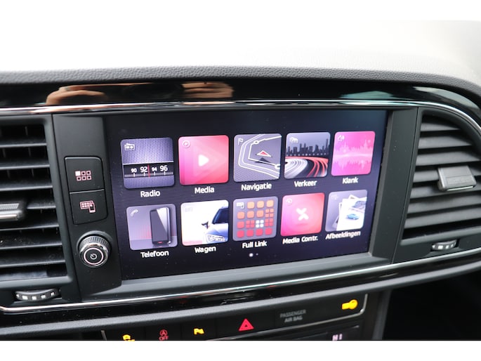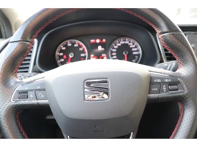 De achteruitrijcamera levert eersteklas parkeerservice. U weet precies hoeveel ruimte u nog heeft, in beeld en geluid. Een goede veiligheidsvoorziening is de spraakbediening en stuurbediening voor belangrijke functies. De auto is natuurlijk voorzien van een full map navigatiesysteem en het audio-installatiesysteem biedt glasheldere geluidskwaliteit dankzij DAB-ontvangst. Met de draadloze telefoonlader laadt uw smartphone automatisch op tijdens het rijden. De automatische airconditioning zorgt onder alle omstandigheden voor een prettige temperatuur. De elektronische systemen in deze SEAT helpen u actief om comfortabeler te rijden. Een automatisch inschakelbare verlichting en een regensensor houden de omstandigheden onderweg in de gaten. En deze auto heeft ook cruise control, sportstuurwiel, keyless entry, automatisch dimmende binnenspiegel, boordcomputer en lederen versnellingspook als standaard uitrusting.