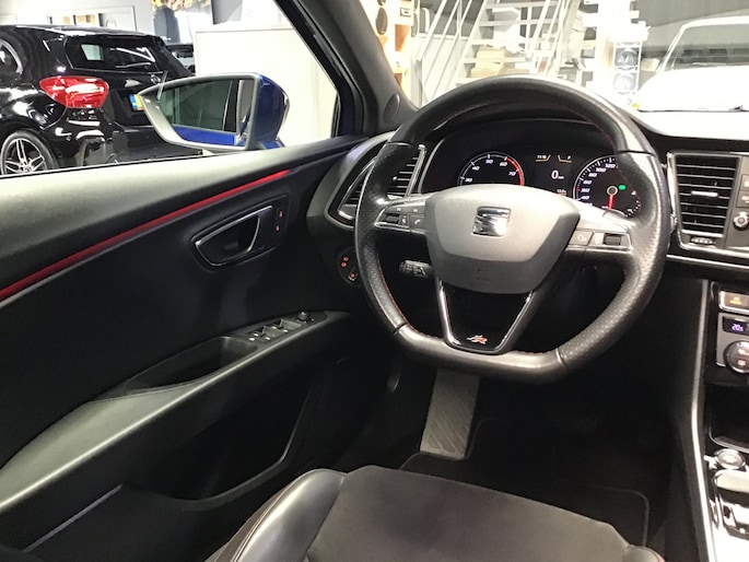 Het is niet alleen maar een stoer uiterlijk, deze Seat Leon ST biedt ook de sportieve rijkwaliteiten die u zoekt. De aandrijving van deze Seat wordt verzorgd door een viercilinder motor en een automatische transmissie. Deze auto is ook voorzien van stoelverwarming. Volop licht en ruimtelijk gevoel geeft het elektrische bediende glazen panoramadak. Xenonverlichting zorgt in het donker voor beter zicht. U wordt in deze auto ook getrakteerd op 18 inch lichtmetalen velgen, LED koplampen, sportonderstel, zwarte hemelbekleding, dakspoiler en extra getint glas.