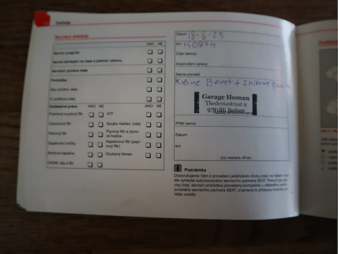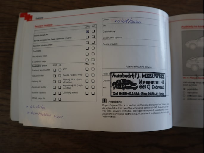 Onderhoudsboekjes: Aanwezig
