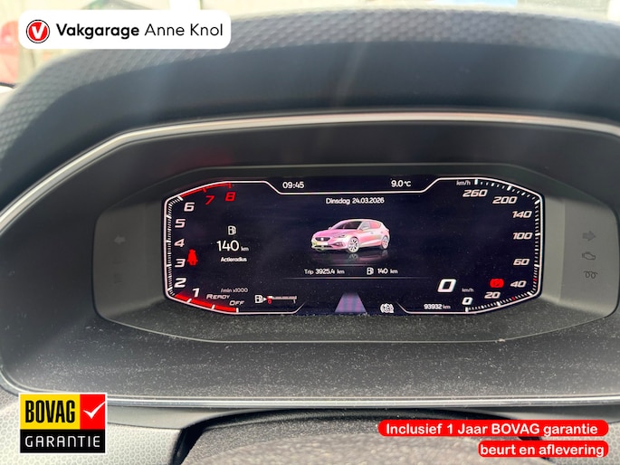 Begeef u op de geweldige rit door de digitale wereld van mobiliteit waar alles wat u wenst voor comfort en veiligheid, wordt geprojecteerd op het digitale dashboard. De hoogwaardige achteruitrijcamera en het display met hoge resolutie zorgen dat helemaal niets u meer ontgaat van wat er achter de auto gebeurt. Als u de adaptive cruise control inschakelt, regelt de auto zelf de snelheid en de afstand tot de auto voor u. Naast handmatige bediening kunt u belangrijke functies met uw stem bedienen dankzij de ingebouwde spraakbediening. Oliepeil, bandenspanning, sloten en andere functies zijn via een speciale app overal te checken dankzij Connected Services. Met navigatiesysteem, automatische airconditioning, draadloos opladen, DAB ontvangst, regensensor en keyless entry is deze Seat helemaal compleet.